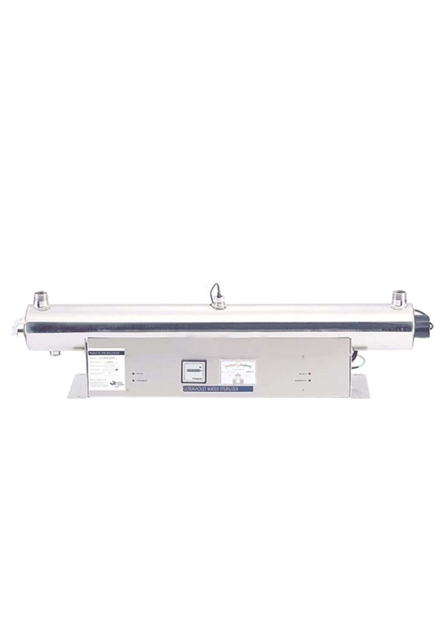 HTM 80W Ultraviolet Lamp with 24 GPM operating in a robust SS 304 pressure vessel. intended to be installed horizontally. It contains two hard glass UV lamps with a high output and two heavy-duty quartz sleeves for optimal performance. A light intensity sensor that detects if the lamp is producing light in the necessary nanometer spectrum is also included. Professionals who want to be certain that the 40 W UV light within the quartz glass tube is operating at its finest must do this.